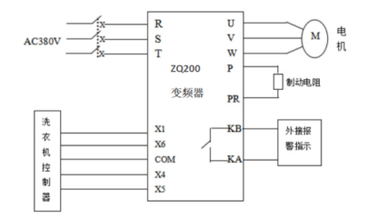 注意事项:因全自动洗衣机特殊的工艺程序要求在变频器选型时一般要求变频器的功率比电机大一至二档。